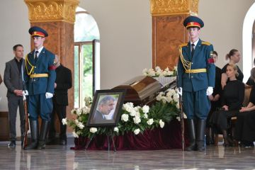 Траурная церемония прошла в Армянской церкви на Олимпийском проспекте.Первый замглавы Администрации Президента России Алексей Громов зачитал телеграмму Владимира Путина. "Светлая память о нем...