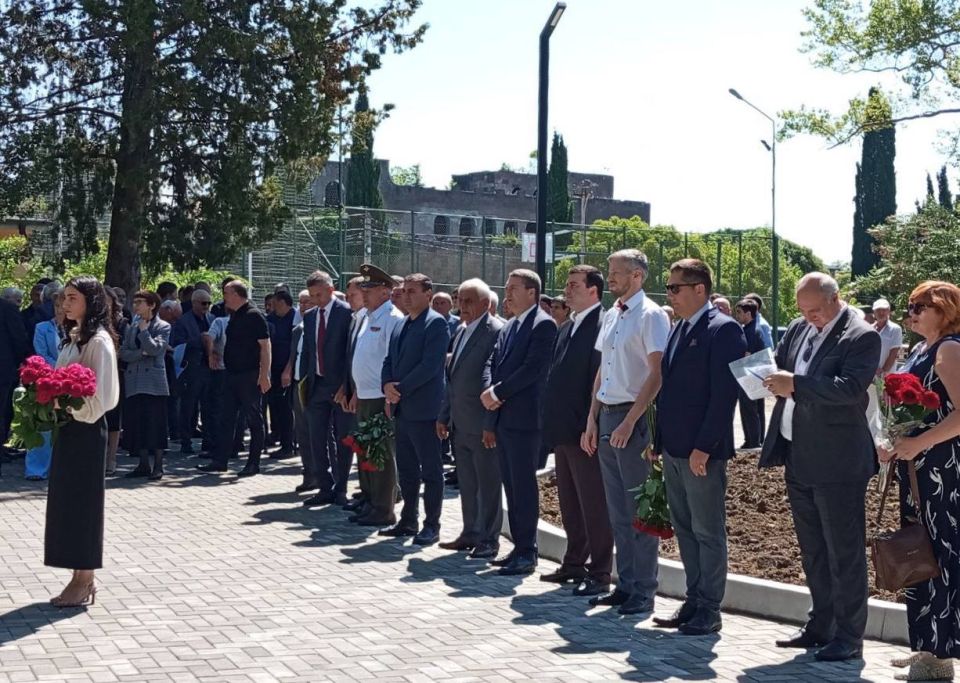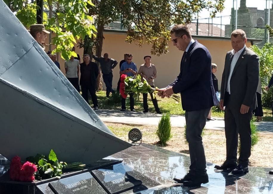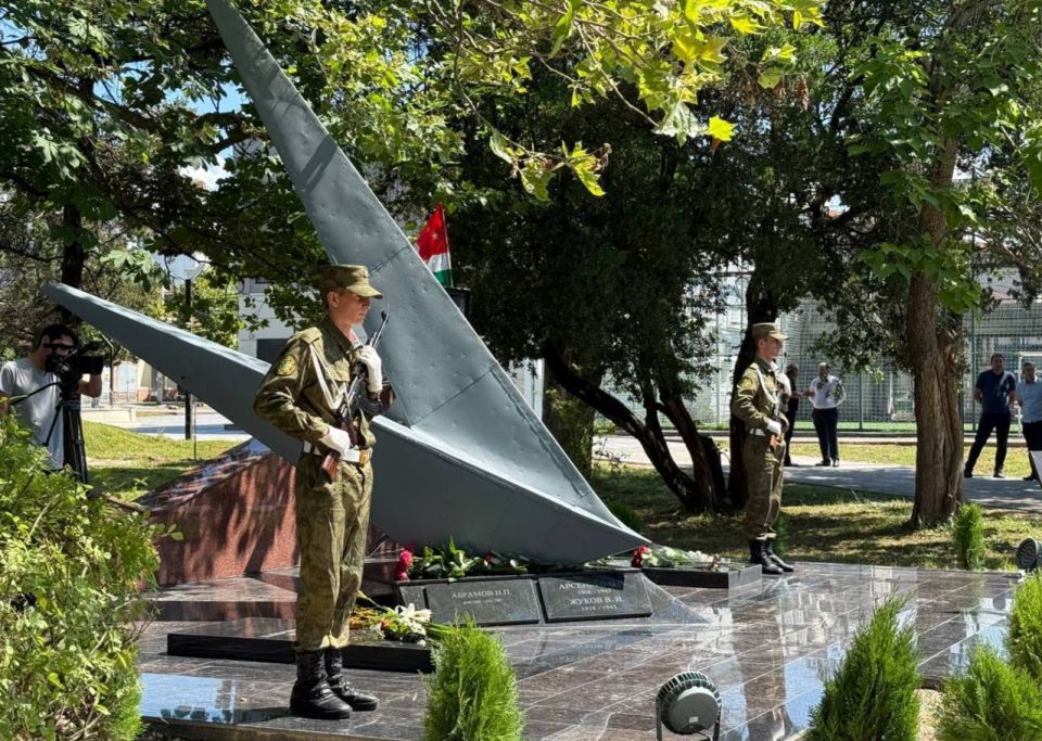 Руководитель представительства Россотрудничества в Абхазии Владислав Куликов почтил память погибших, возложив цветы к памятнику.