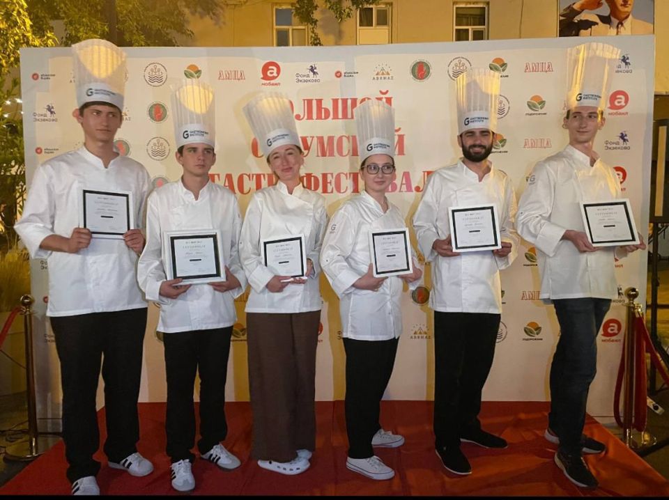 В рамках Сухумского гастрофестиваля сертификаты будущим шеф-поварам вручили организатор фестиваля Вахтанг Тужба и шеф-преподаватель Института гастрономии Сибирского федерального университета Максим Черевиченко.