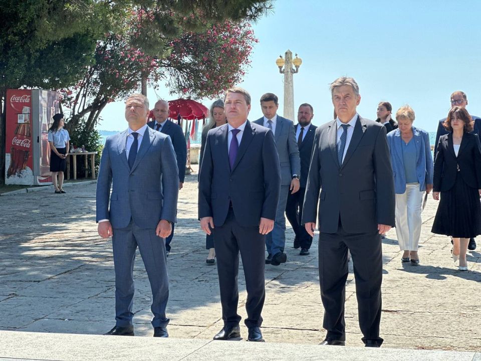 Делегация Псковской области, возглавляемая с губернатором Михаилом Ведерниковым, возложила цветы к Памятнику Неизвестному Солдату на набережной Диоскуров