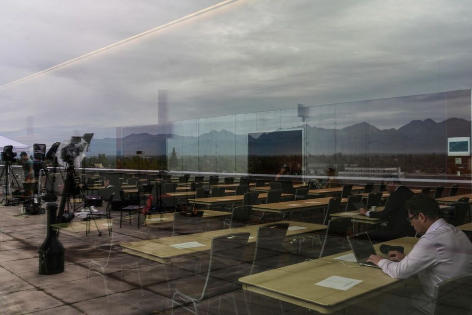 Журналистов поселили на стадионе в Анкоридже из-за нехватки мест размещения в городе.