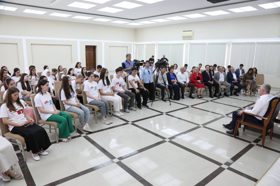 Президент Абхазии Бадра Гунба встретился сегодня с детьми из Северного Кавказа, которые отдыхают в лагере «Ахьышьрахь» («К истокам»).