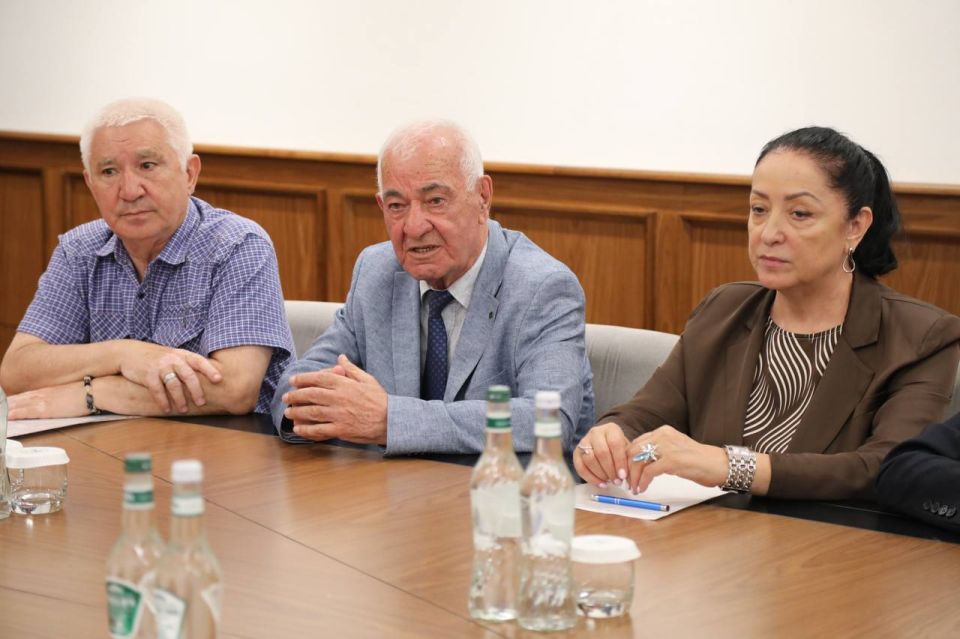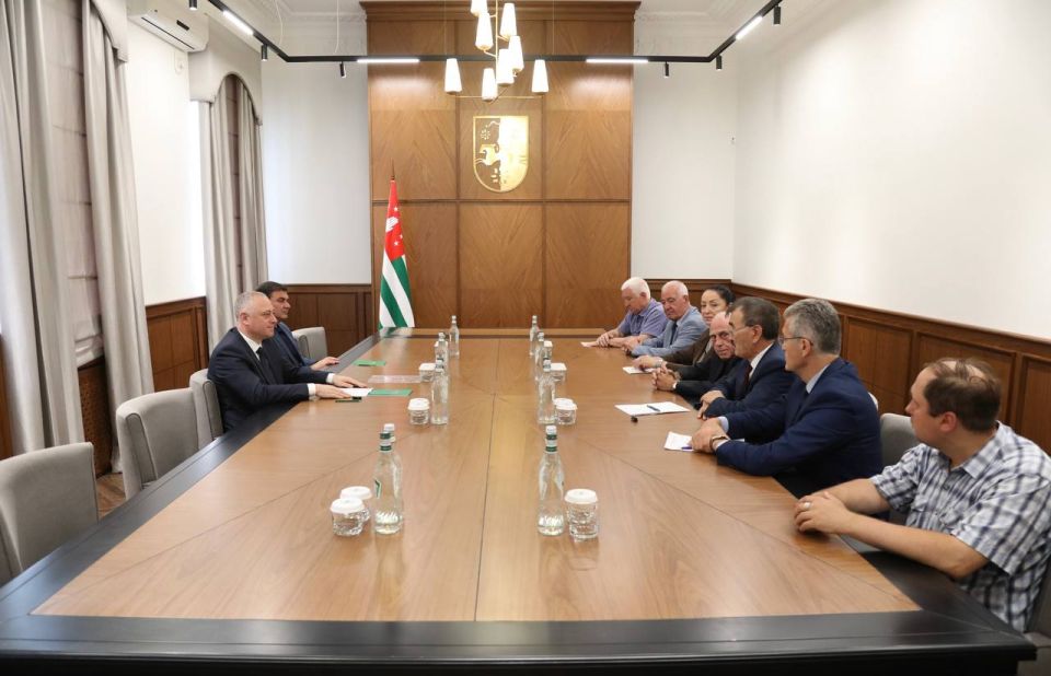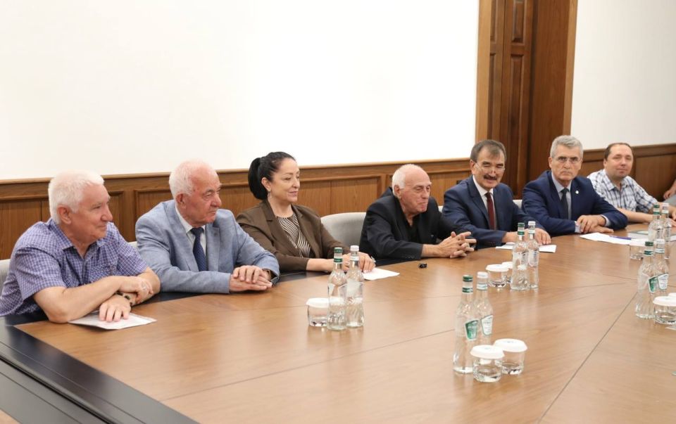 Встреча Президента Абхазии Бадры Гунба и Вице-президента Беслана Бигвава с участниками Форума Совета старейшин коренных народов Евразии