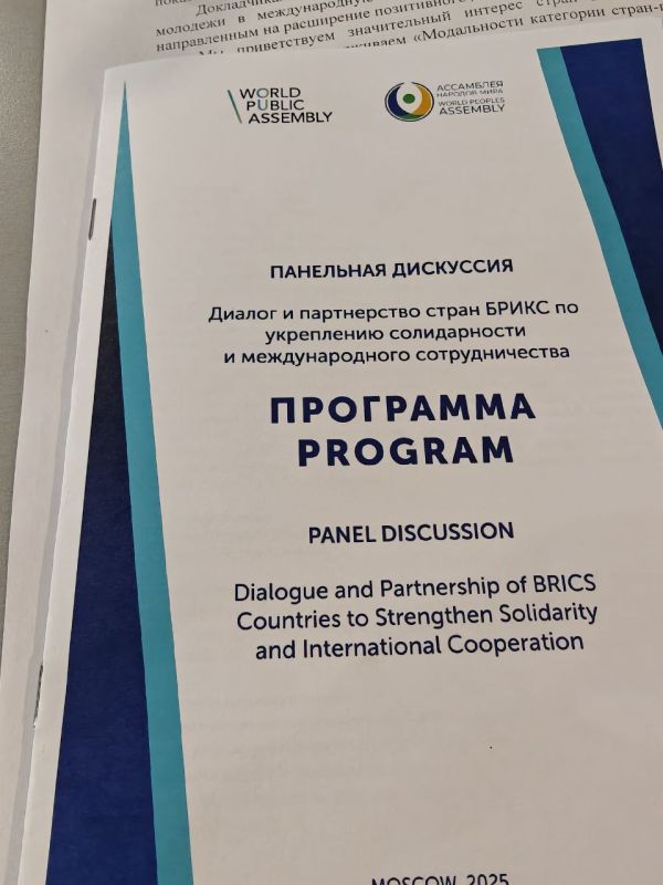 В субботу с утра пораньше уже в ЦМТ на Первую Всемирную Общественную Ассамблею «Новый мир осознанного единства» (рук. Бельянинов А. Ю.). Выступил на панельной дискуссии "Диалог и партнёрство стран БРИКС по укреплению солидарности и международного сотрудничества".