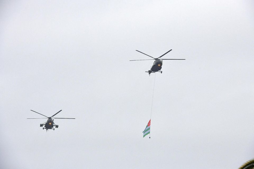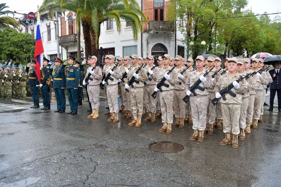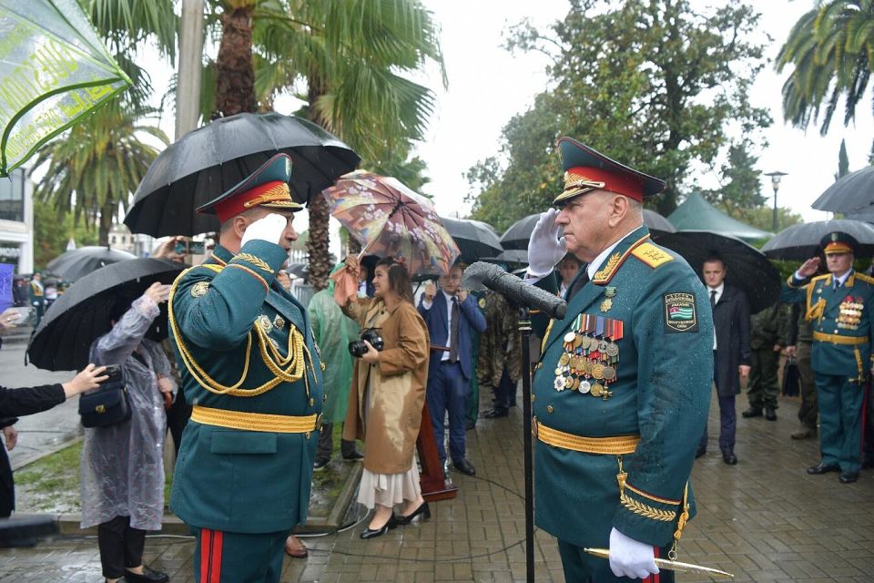 В важный государственный праздник по всем городам и районам проходят торжественные мероприятия. Одно из самых главных - военный парад в Сухуме.
