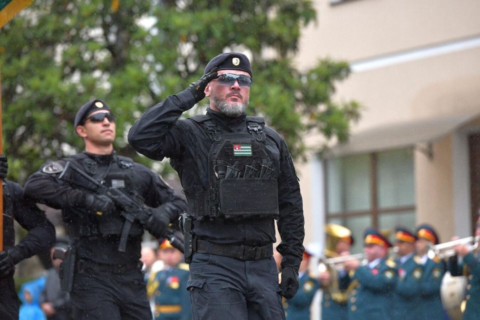 Командовал парадом первый замминистра обороны Беслан Цвижба.