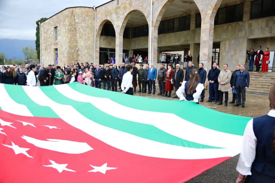 Также состоялись праздничный концерт и спортивные мероприятия, в рамках которых команды Гудаутского района состязались в метании дротиков и конном футболе.