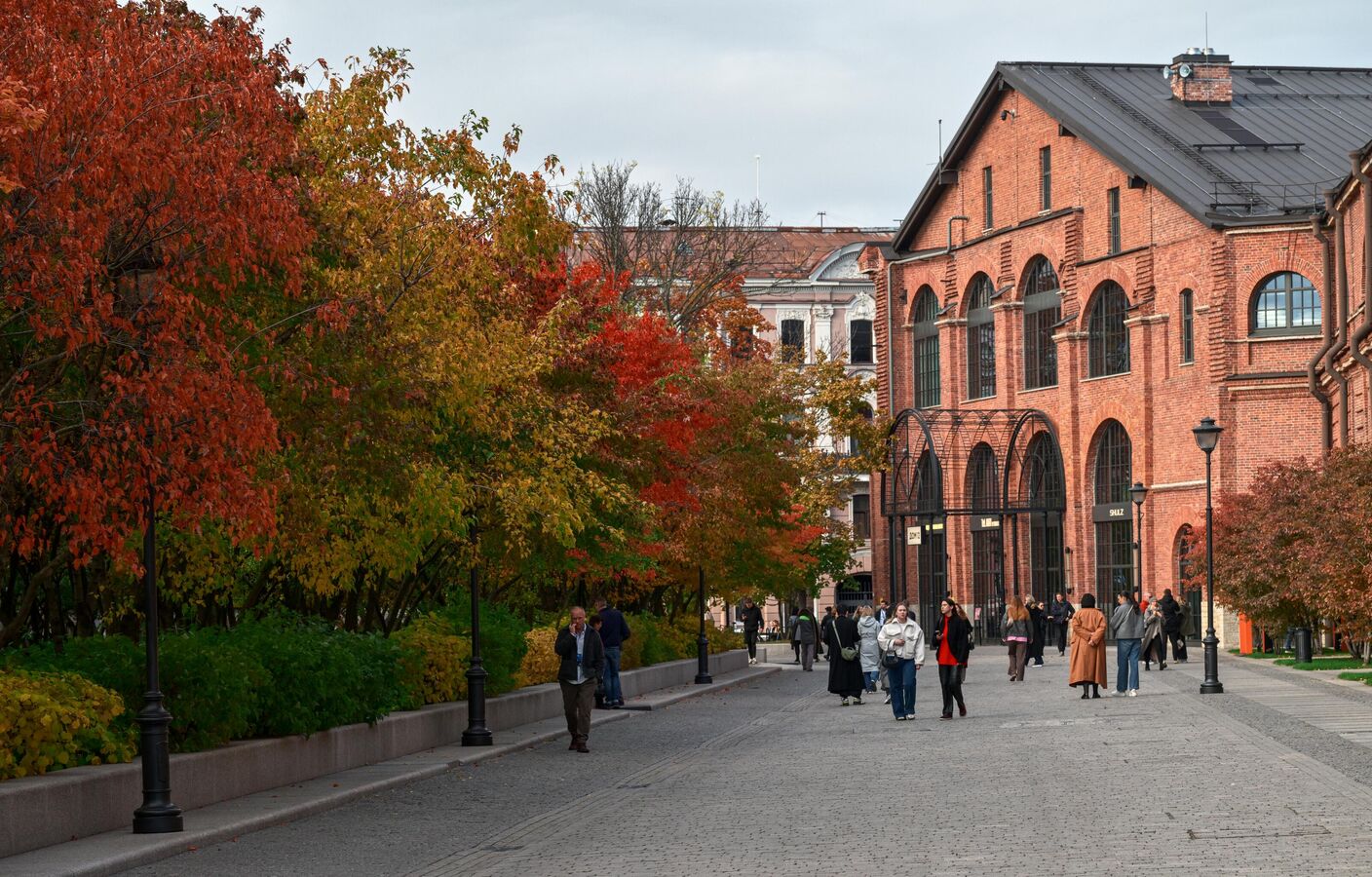10 октября в Линчепинге, Швеция, можно увидеть разноцветные листья на деревьях.