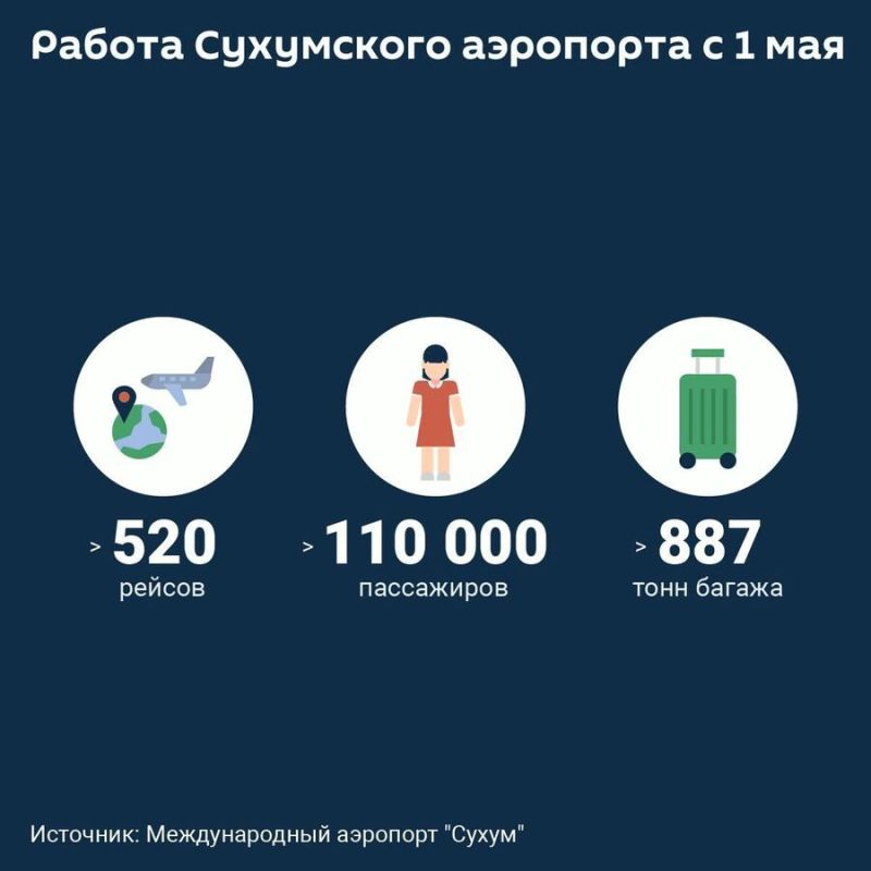 За этот период было выполнено более 520 рейсов, обработано свыше 887 тонн багажа, сообщили в пресс-службе воздушной гавани.