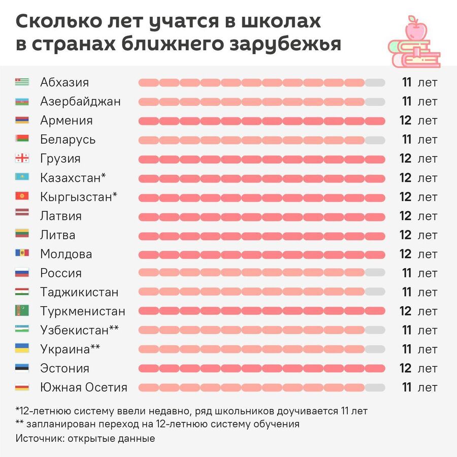 Сколько лет сейчас учатся в школах России и стран ближнего зарубежья — на графике @SputnikLive.