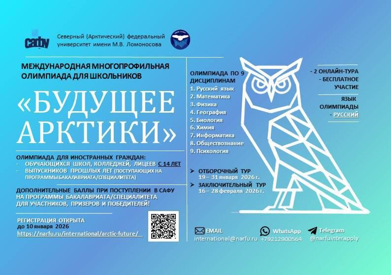 Северный (Арктический) федеральный университет им. М.В. Ломоносова приглашает школьников и будущих магистров!