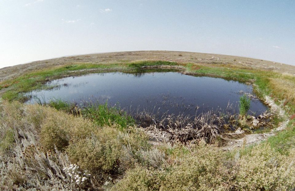 Озеро на месте первого наземного ядерного взрыва на Семипалатинском полигоне.