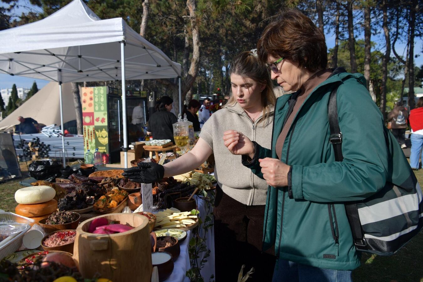 Крестьяне и повара представили блюда не только абхазской национальной кухни, но также европейской и азиатской. Гостей угощали сезонными фруктами и напитками из них, домашней выпечкой и лакомствами.