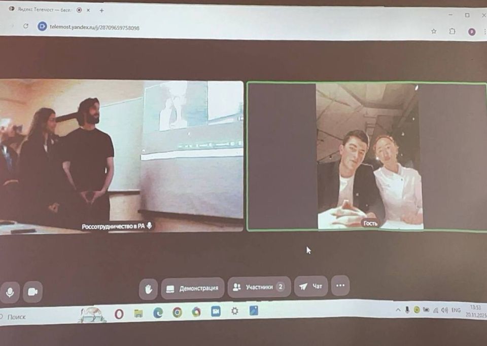 Также с ребятами по видеосвязи пообщались студенты из Абхазии – Мариана Жиба, Данил Киут и Нестор Багателия, которые сейчас обучаются в Институте гастрономии СФУ. Они рассказали о своей учебе и даже провели мини-экскурсию.