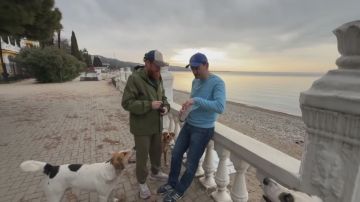 Семён Пегов раздает подарки на Сухумской набережной