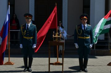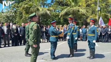 В рамках международной акции «Огонь памяти» почетный караул 7-ой военной базы Министерства обороны Российской Федерации доставили в Сухум лампаду с частичкой Вечного огня, горящего у Кремлевской стены в...