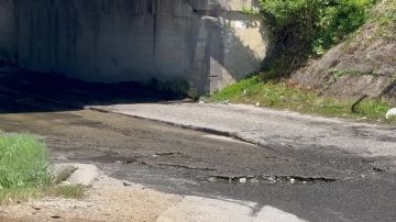 Бетонное полотно там полностью разрушилось, обнажив армированные металлоконструкции, повреждающие машины.По словам замглавы администрации Константина Тарба...