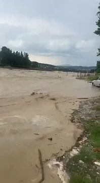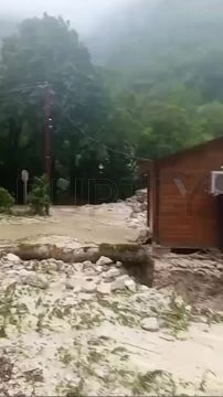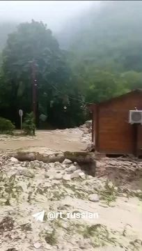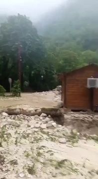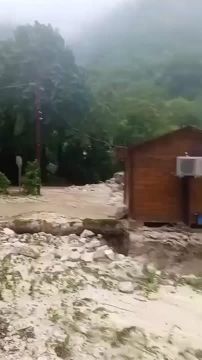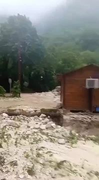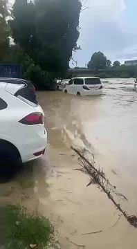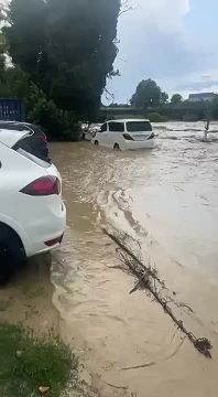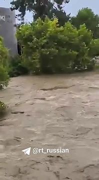 Он снёс авто и разрушил аттракцион «Тарзанка».Движение на участке временно остановлено. Также из-за ливней вышла из берегов река Псоу. Заливает сейчас и Сочи.Подписаться на RT: ТГ | Зеркало | MAXВ...