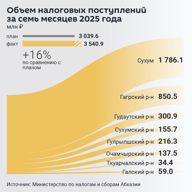 Более 3,5 млрл рублей налоговых платежей поступило в бюджет Абхазии за семь месяцев