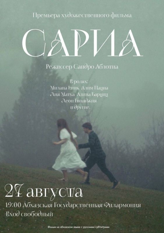 27 августа, в 19:00, в Абхазской государственной филармонии состоится показ фильма «Сариа» молодого абхазского режиссера Сандро Аблотия