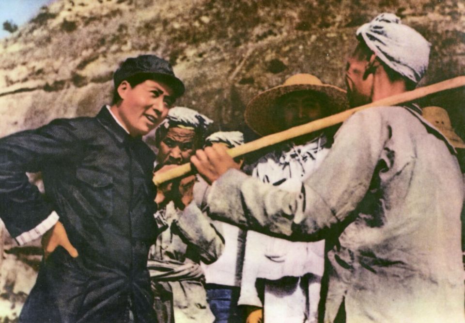 Председатель Мао беседует с крестьянами деревни Янцзялин в Юнани, провинция Северный Шэньси, во время Второй японо-китайской войны 1937–1945 годов.