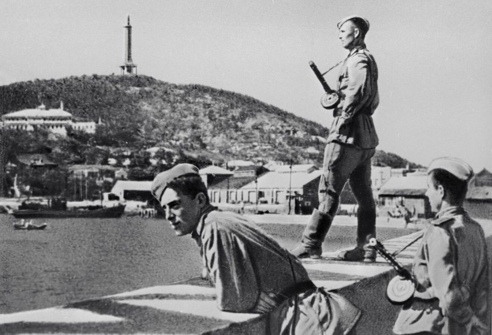 Бойцы Советской армии в Порт-Артуре.