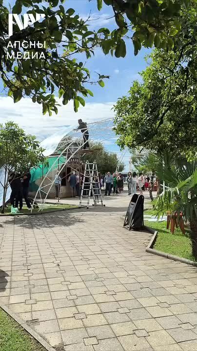 По словам владельцев заведения, старый поликарбонат заменили на новый, современный и монолитный. Также усилен каркас конструкции для навеса.