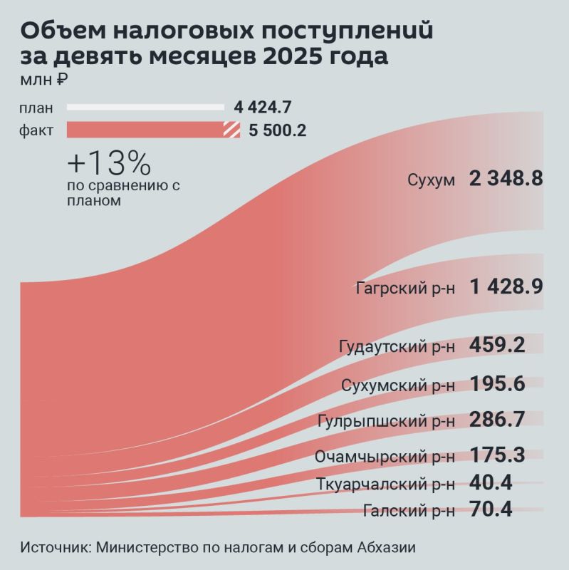 Более 5 млрд рублей налогов поступило в бюджет Абхазии за 9 месяцев 2025 года.