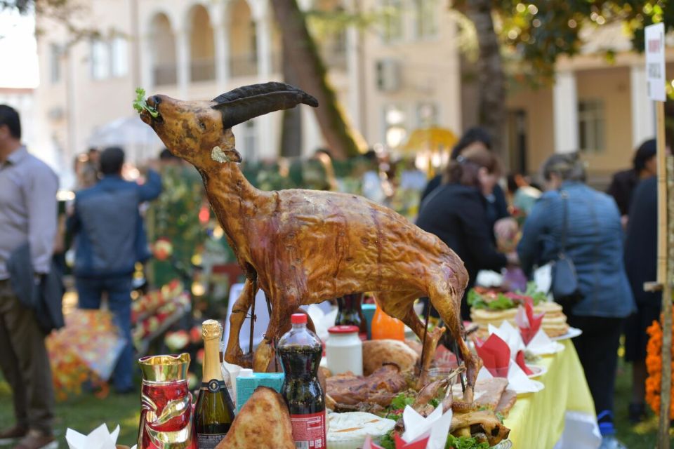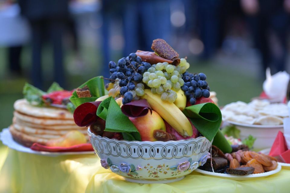 Каждая школа подготовила стенд с традиционными угощениями, отражающими национальные особенности района. На столах были различные блюда национальной кухни – любой желающий мог угоститься.