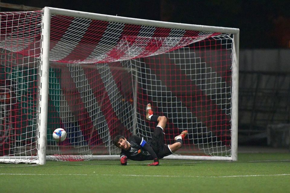 Один из голов сухумского "Нарта" - вратарь не дотянулся до игрового снаряда.