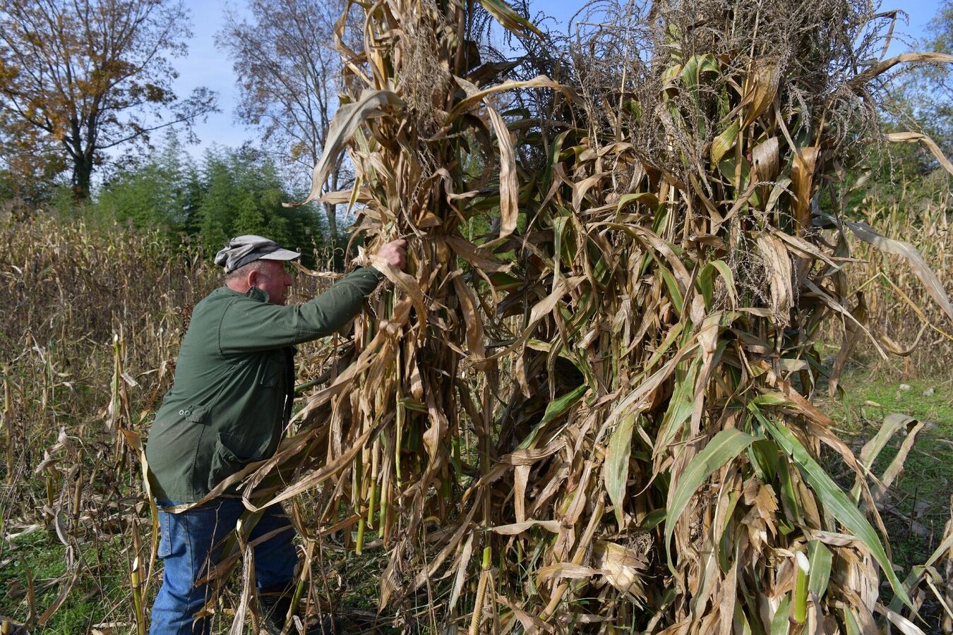 Стволы кукурузы складывают в стога, чтобы зимой ими кормить скотину