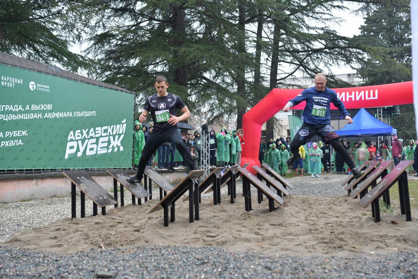 Соревнования "Абхазский рубеж" впервые проводятся в Абхазии, для этого в Сухуме построили спортплощадку. Трасса включает более 20 элементов, рассчитанных на силу, координацию и выносливость.