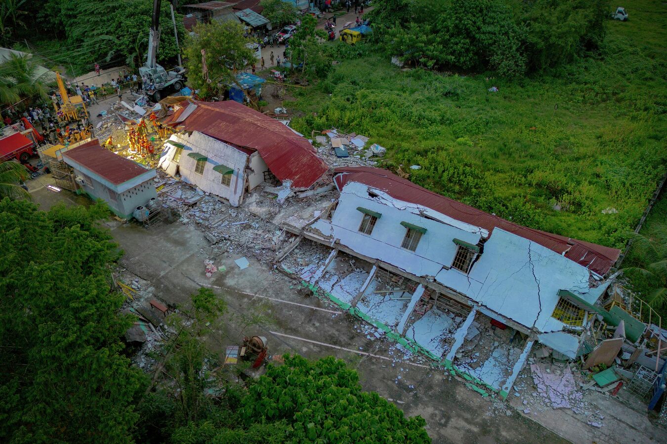 На этом снимке спасатели ищут выживших под завалами разрушенного жилого здания после землетрясения на Филиппинах