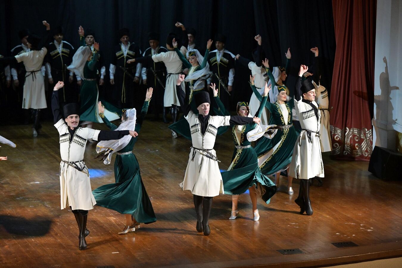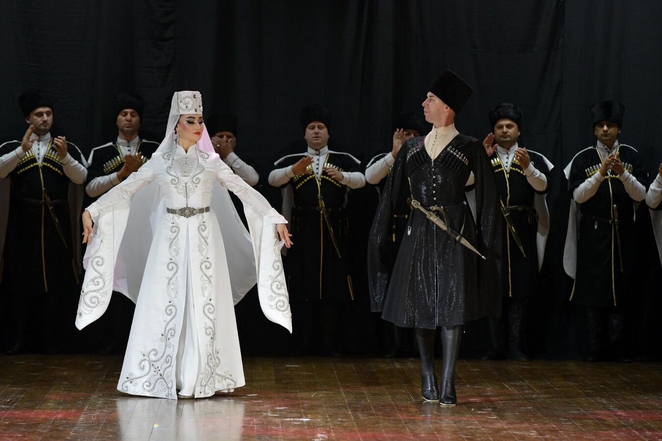 Зрителям были представлены известные номера ансамбля — вокально-хореографическая сюита "Абхазская свадьба", лирический девичий танец, танец с бурками, танец соотечественников, абхазский хороводный народный танец и молодежный перепляс, а также танцы народов Кавказа.