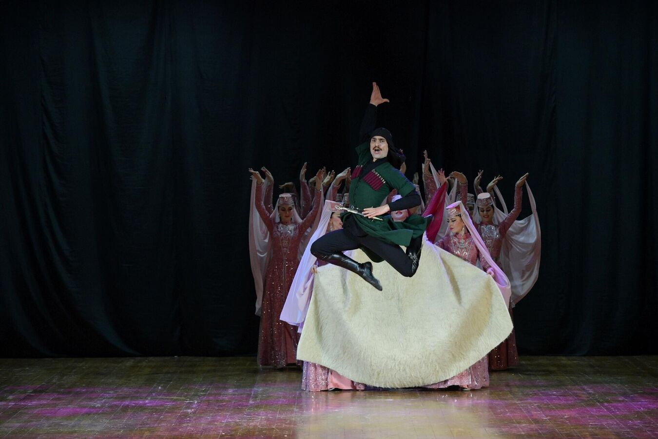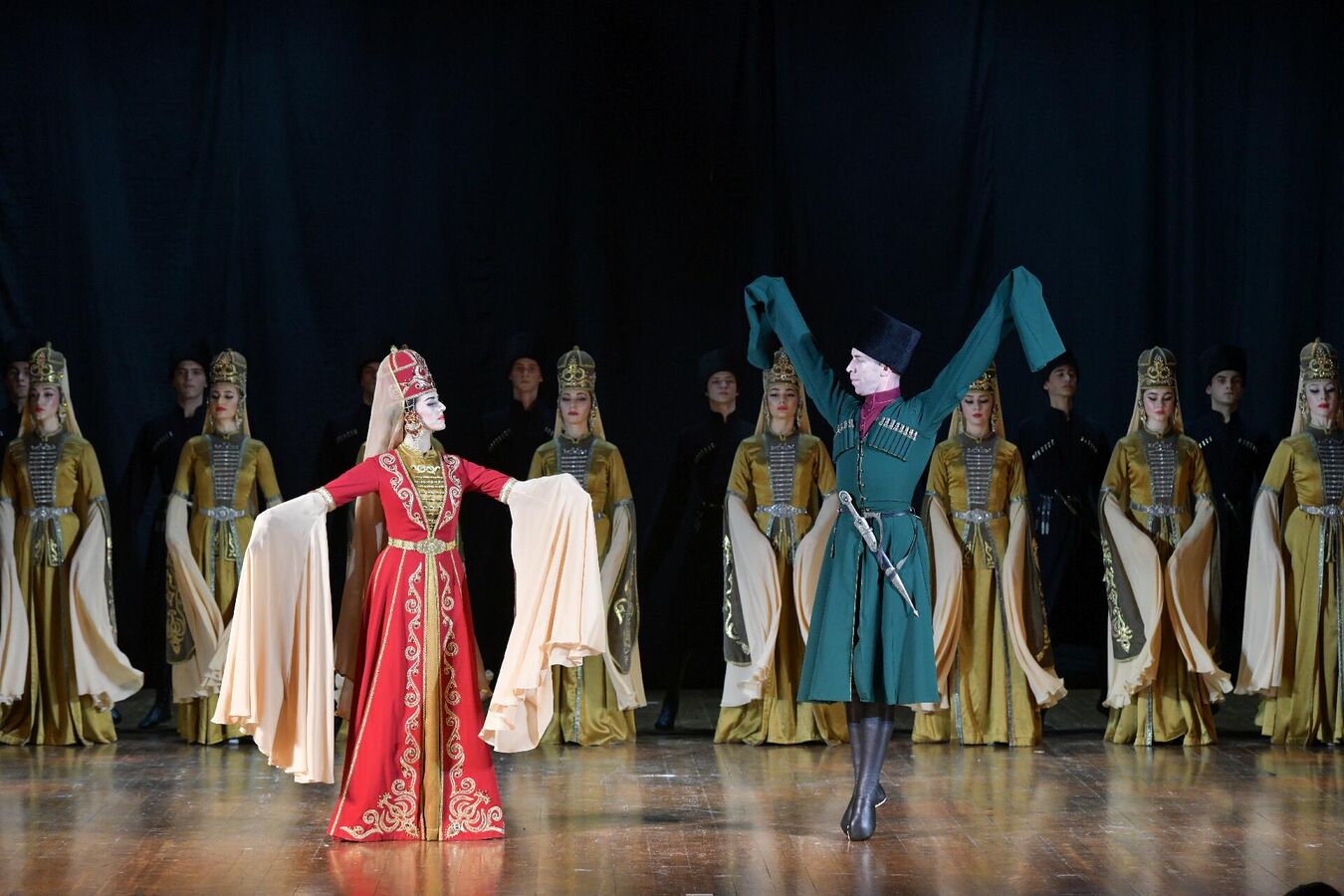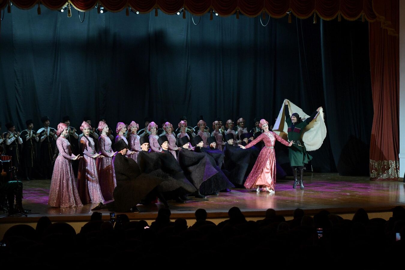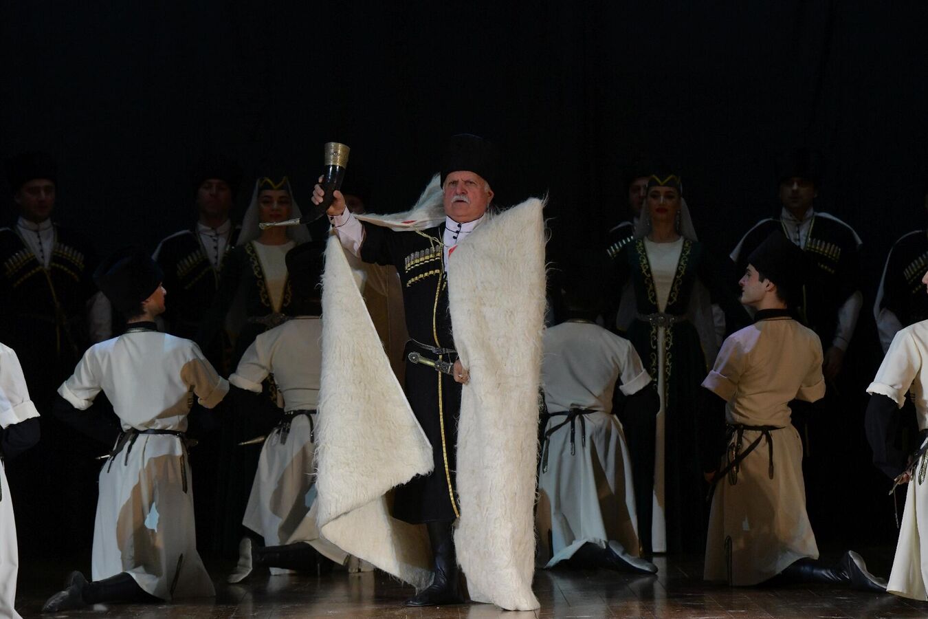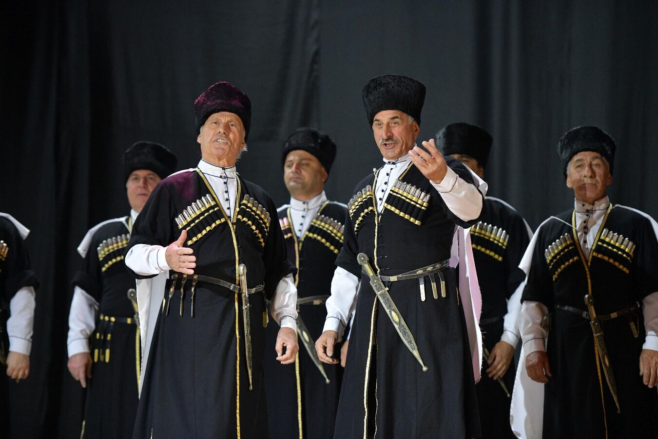 Хор ансамбля исполнил народные песни "Озбакь", "Саматхуа", песню "О скале", "Гудиса", песню "О ранении" и другие.