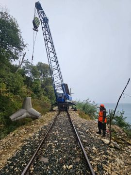 "Абхазская железная дорога" проводит берегоукрепительные работы в районе "Золотого поста" в Гагрском районе. Их завершат в течение дня, после чего движение восстановят.Компания...