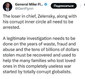 "Главного неудачника, Зеленского, и его коррумпированное ближайшее окружение необходимо арестовать.Нужно провести законное расследование многолетних растрат...